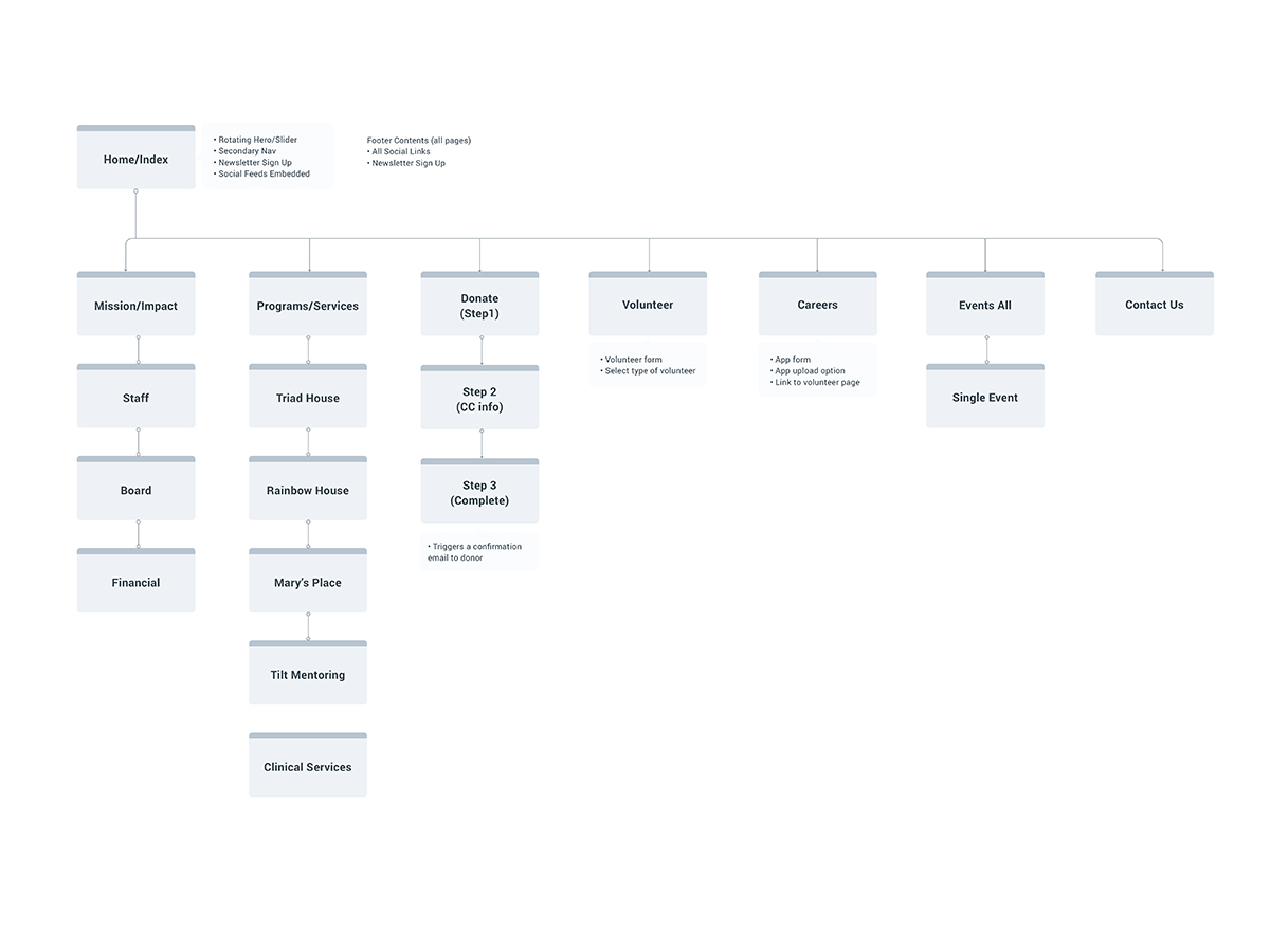 Not only was the rework of the overall site structure important, but so was its visual appeal. It needed to be a site that not only painted LifeTies as trusted organization, but also utilized visuals that tugged at the heart strings of potential donors and volunteers.
